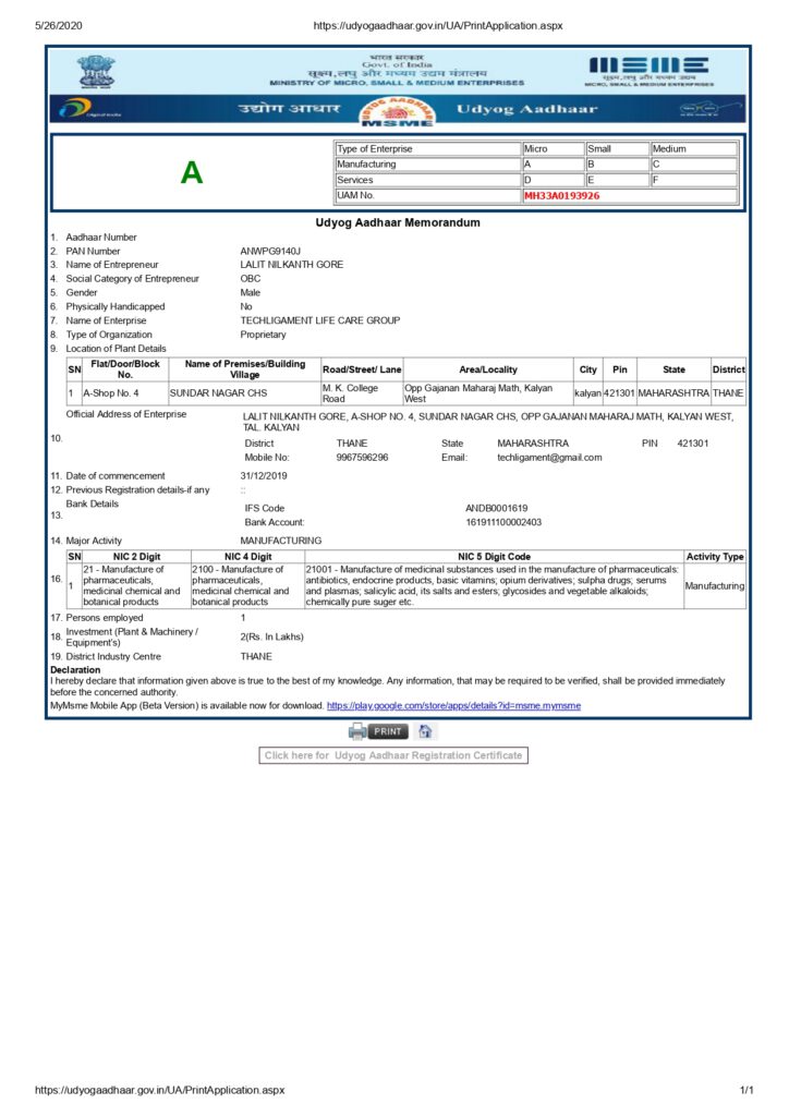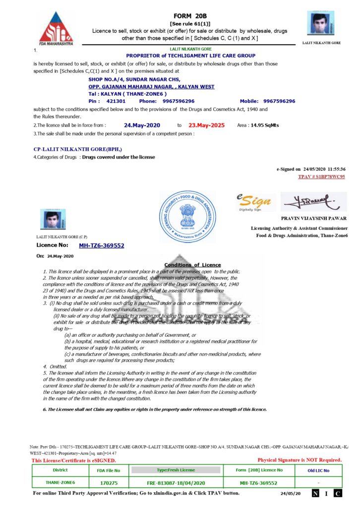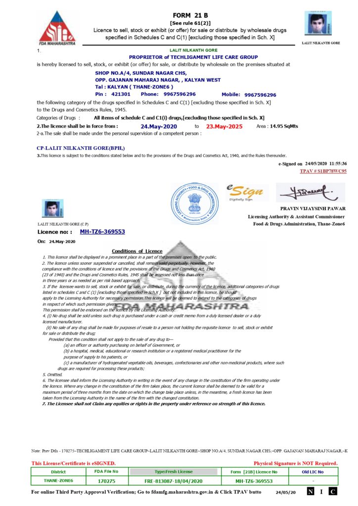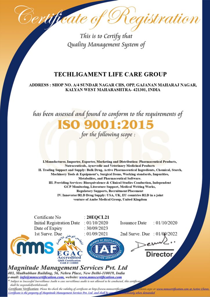 Resources & Certificates Useful Links DCGI SUGAM Portal USFDA Product Specific Bioequivalence Guidance Orange Book Europe Product Specific Bioequivalence Guidance FDA Maharsahtra Certificates TLC Business PPT Download PDF LALIT GORE GCP Expert Download PDF TLC Group GST Certificate Download PDF TLC Group ISO Certificate View PDF TLC Group Form 21B View PDF TLC Group Form 20B View PDF TLC Group MSME View PDF